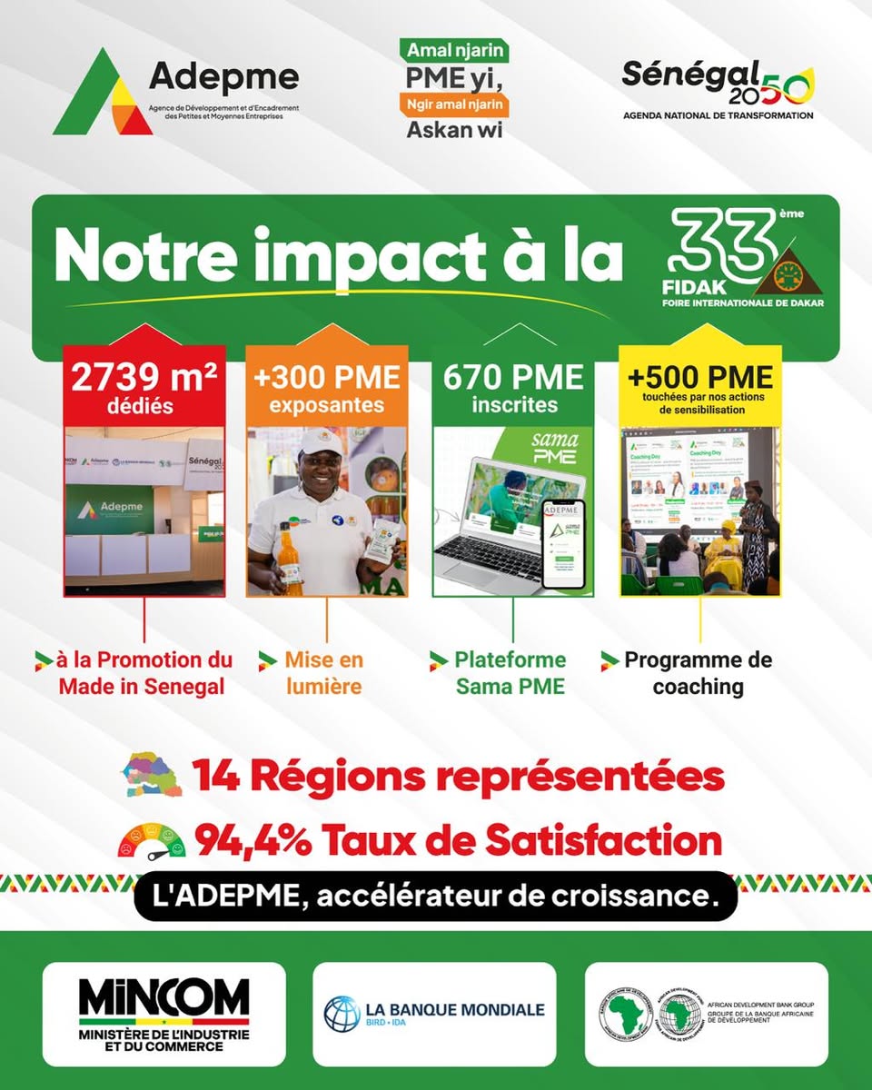 En outre, lโADEPME et le FONGIP prรฉvoient de coopรฉrer activement lors du prochainย Forum des PME ,prรฉvu les 18,19 fรฉvrierย , sous la prรฉsidence de Son Excellence Bassirou Diomaye Faye, Prรฉsident de la Rรฉpublique. Cet รฉvรฉnement sera une opportunitรฉ de valoriser leurs efforts conjoints et de poser de nouvelles bases pour le dรฉveloppement des PME au Sรฉnรฉgal.